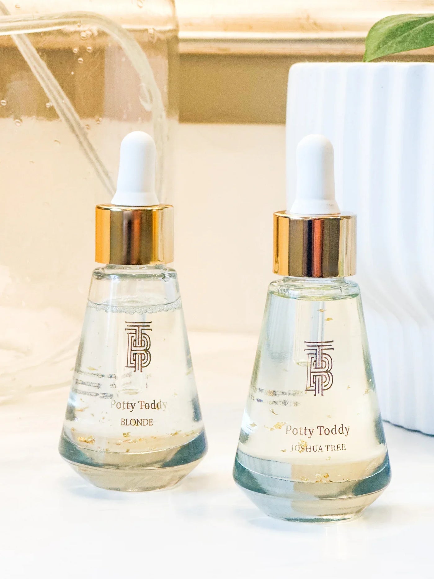 Want at discreet way to go potty? Try our Potty Toddy drops! Not only is if fabulous looking with its 24 karat gold floating around in it, it smells good too! Just add a few drops before you go!