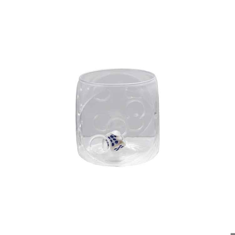 This 3" square by 3" high pressed drinking glass features a unique die inside for added visual interest. The glass is perfect for serving your favorite beverages in style. The die adds a fun element to the glass, making it a great conversation starter at any gathering. Made of high-quality materials, this glass is durable and dishwasher safe for easy cleaning. Add a touch of whimsy to your drinkware collection with this charming pressed drinking glass.